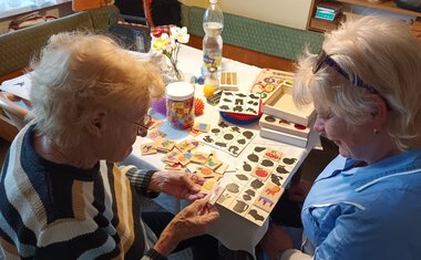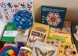 Tyto pomůcky pomáhají klientům efektivně trávit jejich volný čas, procvičovat paměť a jemnou motoriku. Asistentky vybírají pomůcky vhodné pro daného klienta vzhledem k jeho zálibám, schopnostem a také oblastem, které klient potřebuje procvičovat. Pomůcky obohatí a zpříjemní klientům jejich volný čas, slouží také k edukaci a rozvoji pozornosti a smyslů.