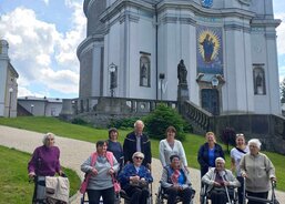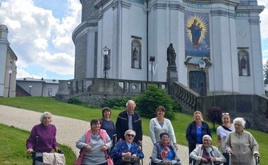 Náš výlet na sv. Hostýn se konal 14. června. I když máme Hostýn na dohled, není pro nás snadné se tam vypravit. Do tří aut jsme naskládali pomůcky, které potřebujeme k přesunu a vydali se na krátkou, přesto dobrodružnou cestu. Propletli jsme se kruhovým objezdem a vymanili z kolony aut z místní objížďky. Potrápili jsme auta do kopce a zaparkovali na místech pro nás určené, až na samém vrcholu. Užili jsme si mši svatou, procházku kolem baziliky i následné posezení na terase s kávou. No prostě - udělali jsme si radost.