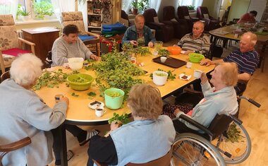 Také jste si všimli, jak moc letos kvetly lípy a jak voněly? Nám budou vonět i v zimě. Díky trpělivosti našich klientů při obírání jsme mohli část květů usušit a z části vyrobit sirup. (Ten do zimy určitě nevydrží, je moc dobrý a mlsáme ho při dopoledních „sedánkách“ na terase J.) Každodenní samozřejmostí je i tělesné a paměťové procvičování, ale nás čekaly dvě důležité události: návštěva dětí z MŠ a ZŠ Chvalčov a výlet na sv. Hostýn.