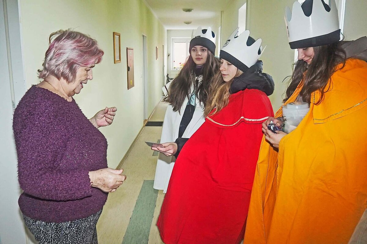 Tříkráloví koledníci každoročně přinášejí do domácností Boží požehnání a poselství milosrdné lásky. Posvěcenou křídou označují dveře domů a do zapečetěných pokladniček pak vybírají dobrovolné příspěvky na pomoc lidem v nouzi.