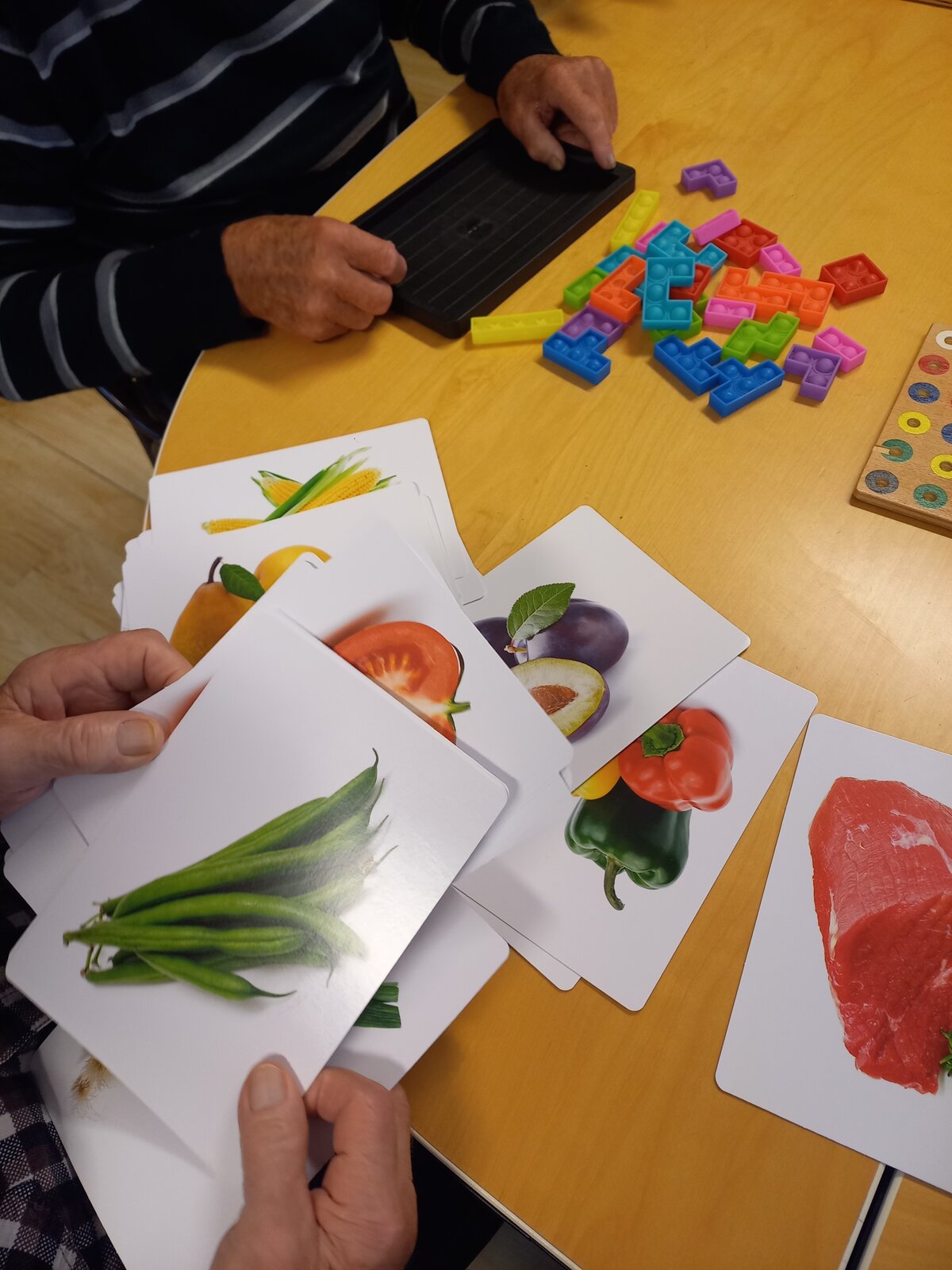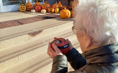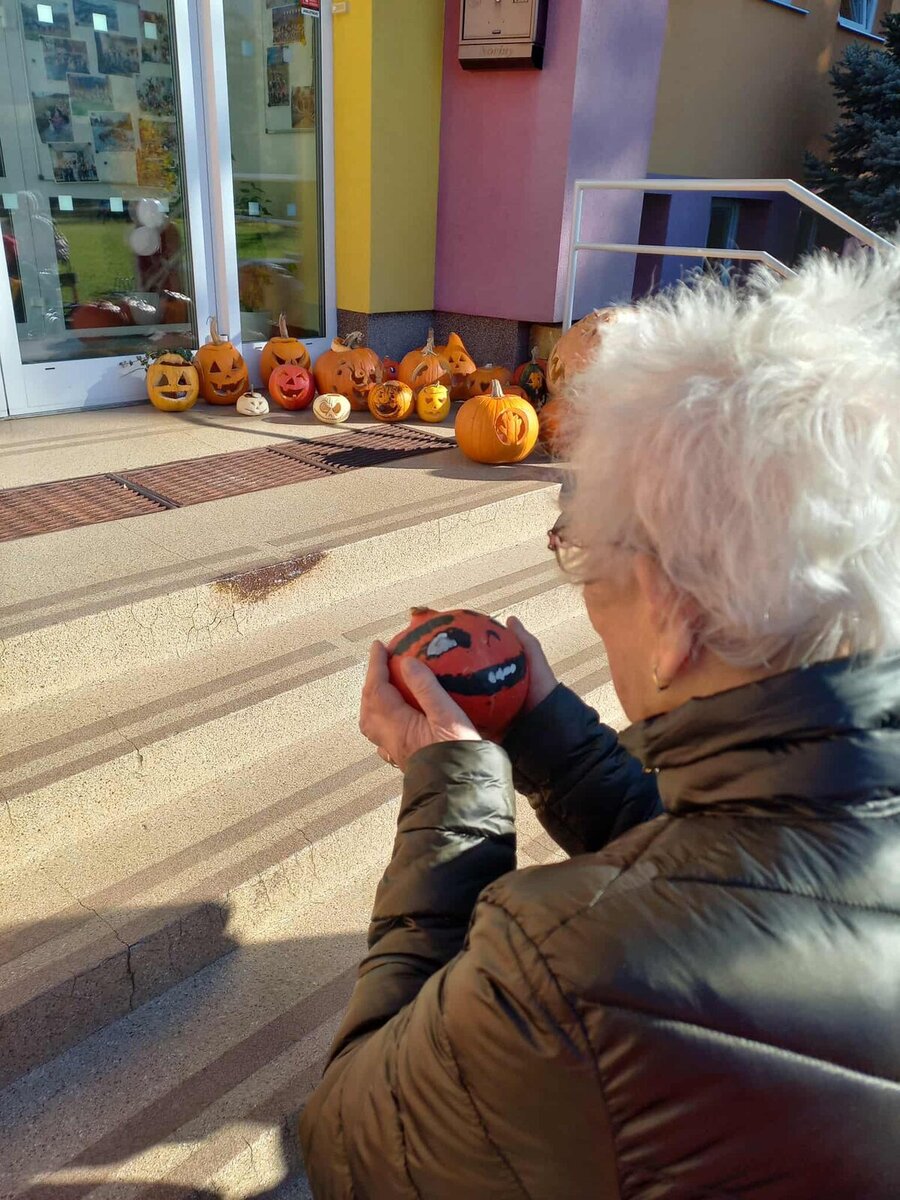 Během dopoledních aktivit využíváme různé pomůcky k procvičení rukou a postřehu, které pomáhají klientům zůstat aktivní a v dobré náladě. Když přeje počasí, vyrážíme i na procházky nebo krátké posezení venku. Při jedné listopadové takové sluníčkové procházce před školu jsme potkali i strašidla z dýní... a hned jsme měli téma do tajenky .